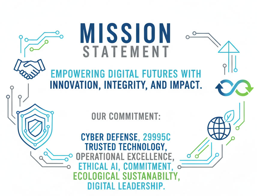 Brindar soluciones integrales e innovadoras en ciberseguridad y tecnología, protegiendo la información, continuidad operativa y reputación digital de nuestros clientes. Generamos confianza a través de la excelencia, la ética y el compromiso, apostando por el desarrollo sostenible y el liderazgo digital en todas nuestras acciones.
